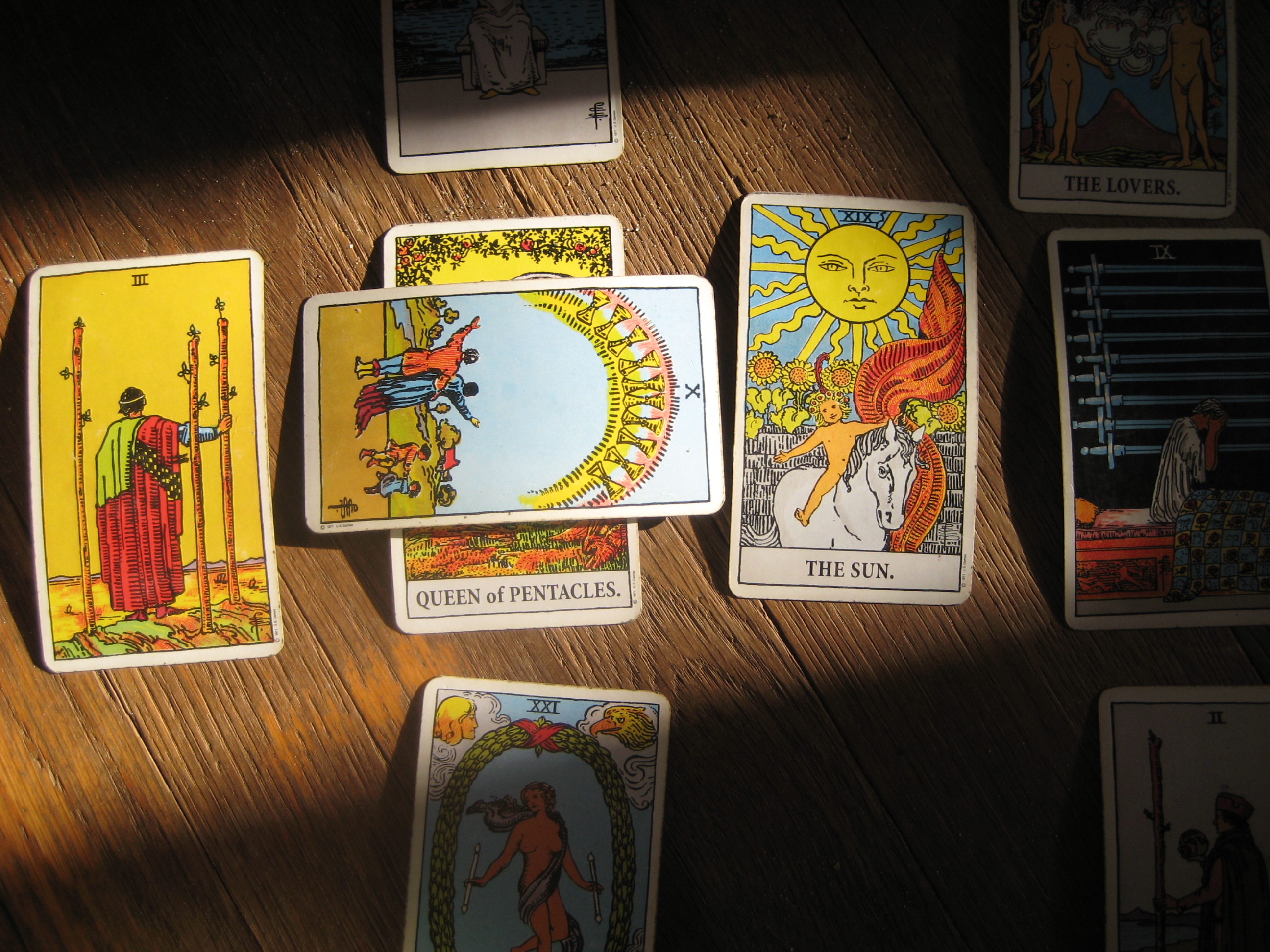 See, tarot cards are a tool, but not one, in my opinion, that’s ready right out of the box. 😛 Would that it were so easy to have “seasoned” cards. And yeah, they need to get seasoned to work at the peak capacity for the owner of the cards, which means they are treated in a manner to make them attached to only you. My method for seasoning a deck starts with me taking the brand-new, never-used cards out of the box and shuffling. And shuffling, and shuffling, and shuffling. Then after they’ve gotten a good 30-60 minutes of it, I put them under my pillow. Then I sleep on them (which I will continue to do so for at least a year.) The next day I shuffle the cards or hold them whenever I get the chance which I continue to do for months. They need constant contact. However, after the first 7-14 days of just shuffling my cards and holding them when they aren’t under my pillow, I will lie out my first spread. The first question is often one I know the answer to, though in subsequent spreads I’ll ask things I’d LIKE TO KNOW the answer to. I check how accurate it is. I then go back to shuffling, holding, sleeping upon. So, at least every other day after I’ve laid out the initial spread, I use them to read. I should be using them every day but it’s hard to come up with questions I need to know anything about. I will continue to work these cards for AT LEAST six months before I consider them seasoned, though generally I prefer about a year. During this time, absolutely NO OTHER HUMAN is to come in contact with this deck. Ever. When I’ve finished seasoning them, I can dispose of my “working deck” be that the one I am using for work (if that’s the one I’m replacing) or for myself (if that’s the one I’m replacing.)