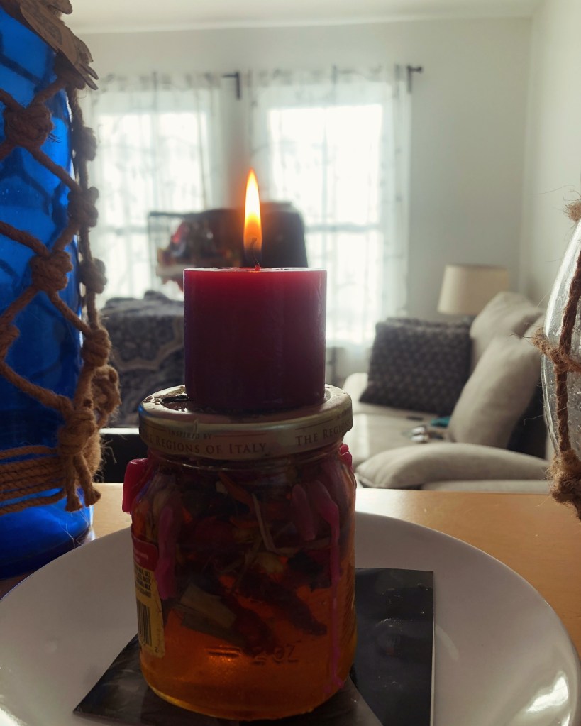 You can store the jar in a closet or out of sight when not being used. Just set the altar as described every time you light a candle on the lid, which should be every Monday, Wednesday, and Friday before 10am until the target’s behavior is to your satisfaction. When this is acheived, you may store the jar for later use. As long as your aim is the same, and the jar shows no signs of mold or decay, you can use this jar spell over and over.
